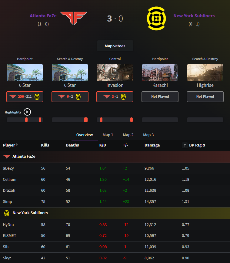 Karsintojen loppupuolella FaZe hävisi tiukan kamppailun päätteeksi toiselle kärkijoukkueelle Toronto Ultralle, mutta sen jälkeen Miami Heretics kaatui vaivatta ja lisäksi Majoreiden avausottelussa nähtiin todellinen myrskyvaroitus, kun NY Subliners kaatui lukemin 3-0. FaZe oli lopulta jokaisessa kartassa kiistatta vahvempi ja ennen kaikkea hurja yksilötaito pääsi valloilleen. Monesti FaZe pystyy kääntämään karttoja puhtaasti vain ampumalla vastustajaa kovemmin, mutta Seattlen kaltaista joukkuetta vastaan myös taktisten valintojen täytyy olla kohdallaan.
