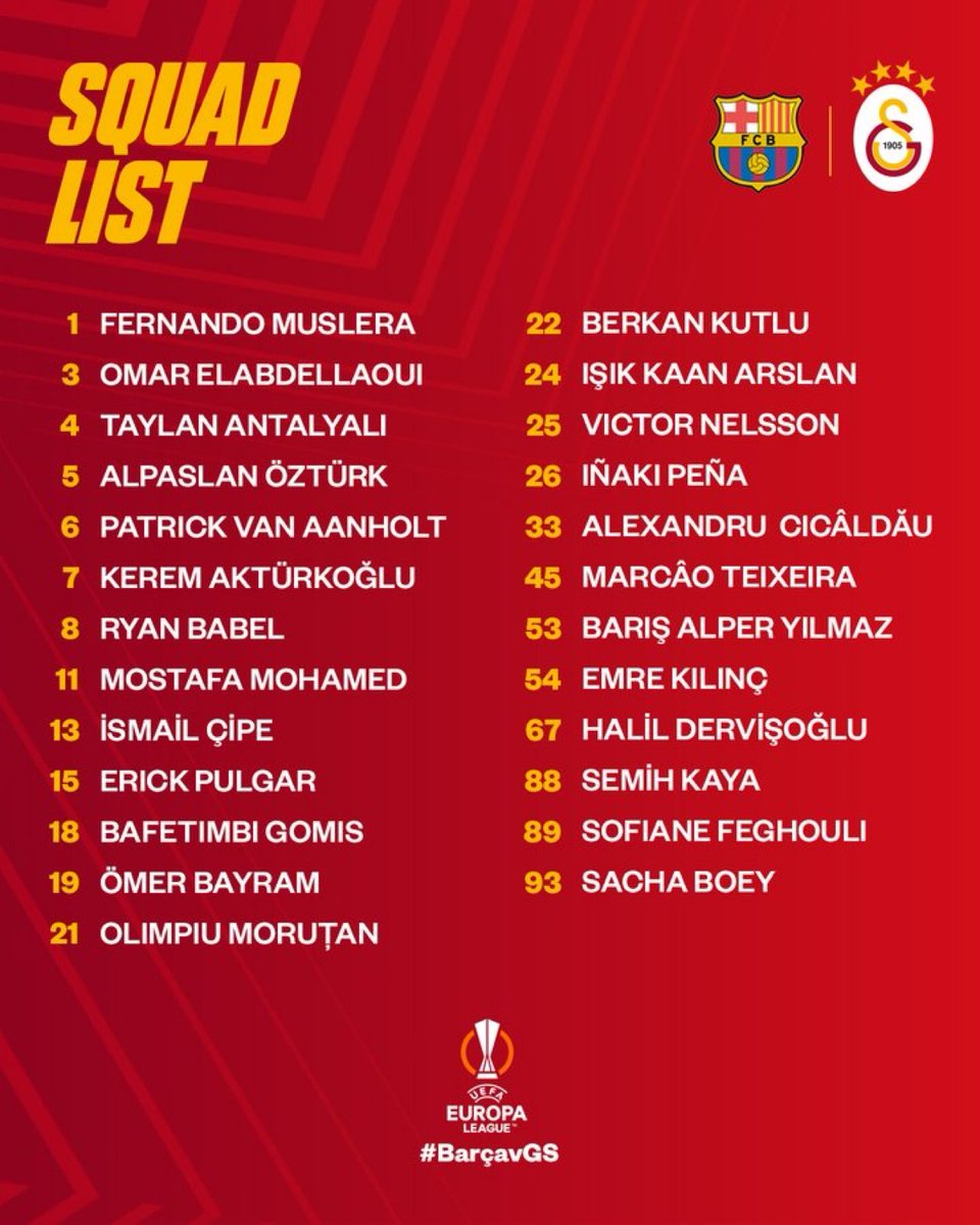 Kerrataan kokoonpanot alkuun. Dani Alves ei ole Eurooppa-liigassa edustuskelpoinen ja Gavi on pelikiellossa. Lisäksi Sergi Roberto, Samuel Umtiti, Alejandro Baldé ja Ansu Fati ovat lasaretissa. Vierailta on sivussa Barcelonaakin edustanut Arda Turan. Sofiane Feghouli ja Kaan Arslan ovat mukana kokoonpanossa missattuaan Konyaspor-kamppailun. Vieraiden kokoonpanotilanne on muutenkin hyvä. Omar Elabdellaoui ja Semih Kaya eivät ole rekisteröitynä europeleihin.
