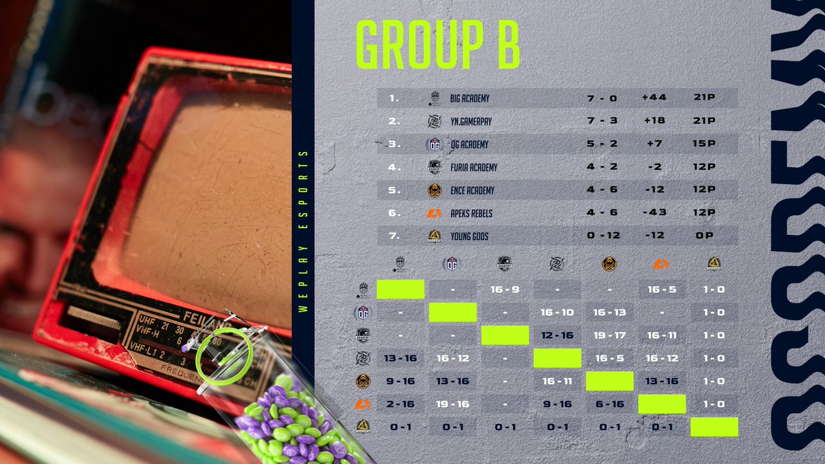 B-lohkon kärkinimi BIG Academy on pelannut vasta seitsemän ottelua, ja silti joukkueella on eniten pisteitä koko liigassa. Joukkue on voittanut kaikki pelaamansa ottelut ja näyttää ehdottomasti liigan kovatasoisimmalta joukkueelta varsinkin nyt, kun MOUZ NXT on osoittanut heikkouksia useassa kartassa.