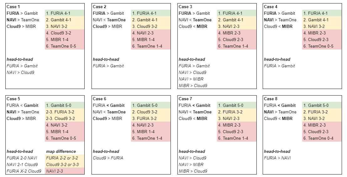 It's not very straightforward to explain - Cloud9 absolutely need a win and preferably NAVI to lose, but if both win and Gambit beat FURIA then Cloud9 go through too.