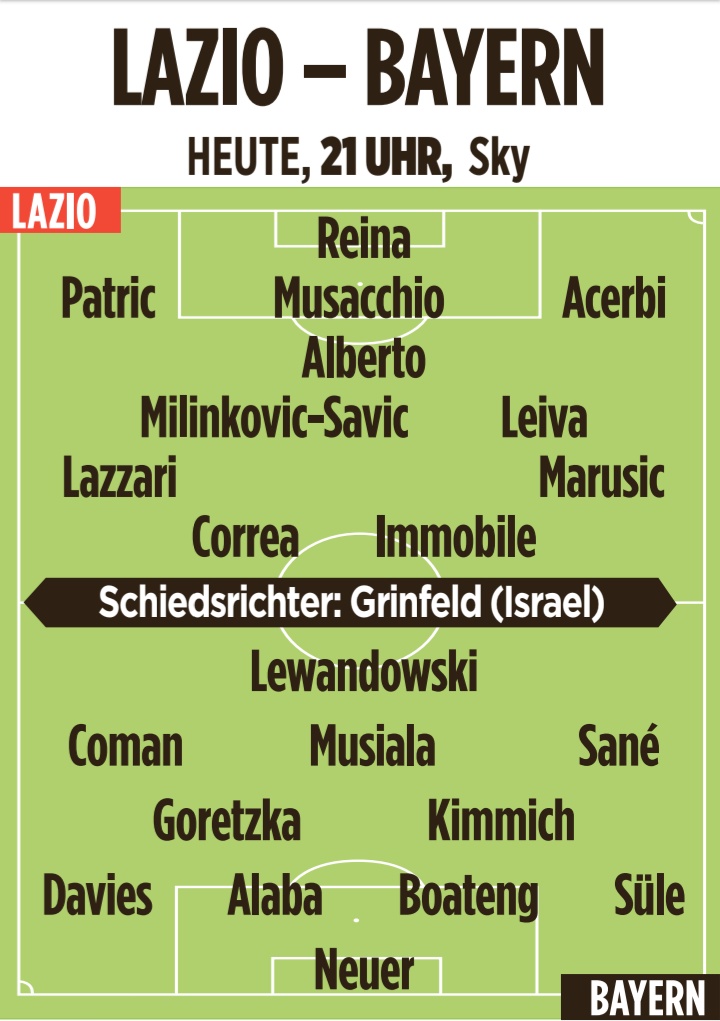 Lazio vs Bayern | Possible lineups [Bild]
