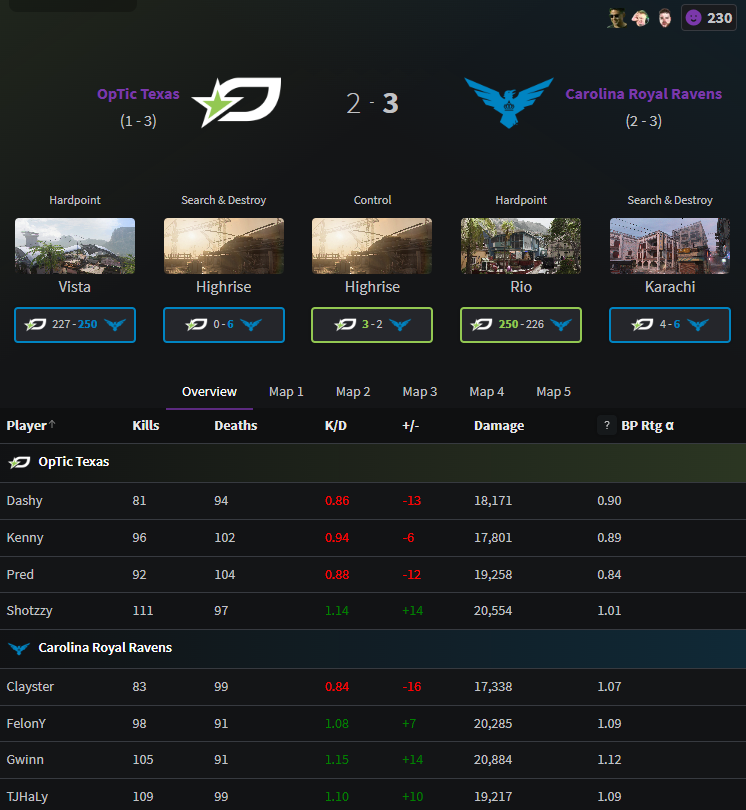 Sublinersin Stage ei ole sujunut ongelmitta, vaikkakin viidestä ottelusta on kertynyt kelvolliset kolme voittoa. Muun muassa viimeisimmässä ottelussa Minnesota Rokkria vastaan voitto tuli vasta viidennessä kartassa ja oikeastaan vain ensimmäinen murskavoitto hardpointissa oli ainoa kartta jossa Subliners oli selvästi vahvempi. Pahasti jumissa ollutta hardpointia on saatu hieman parempaan kuosiin, mutta nyt luvassa on todella kova testi, sillä kyseessä on OpTicin selvästi vahvin pelimuoto.