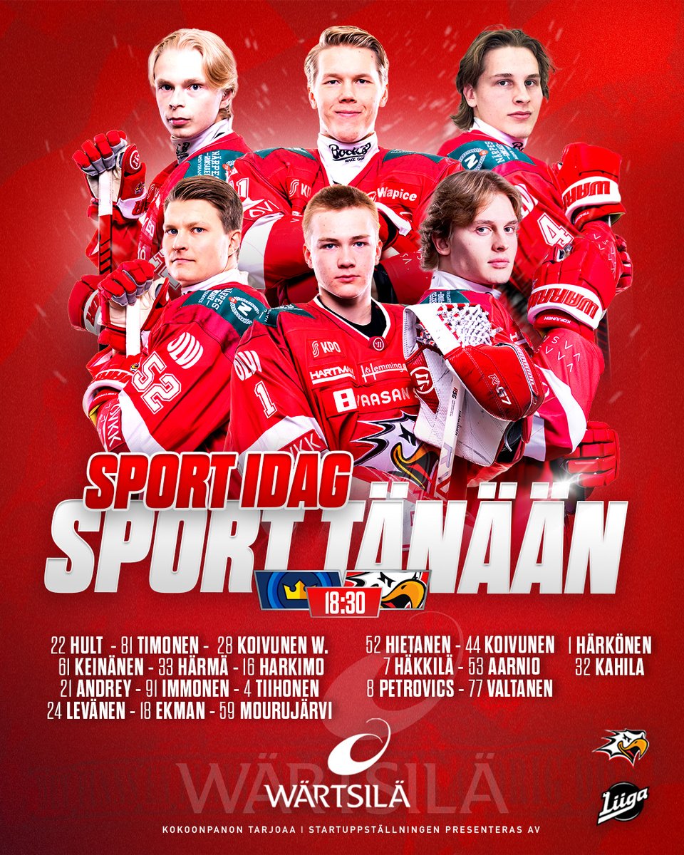 🇸🇪 SPORT I DAG! ❤️🤍 Bruno Petrovičs gör sin Liiga-debut och Brad Hunt är utanför kvällens laguppställning.